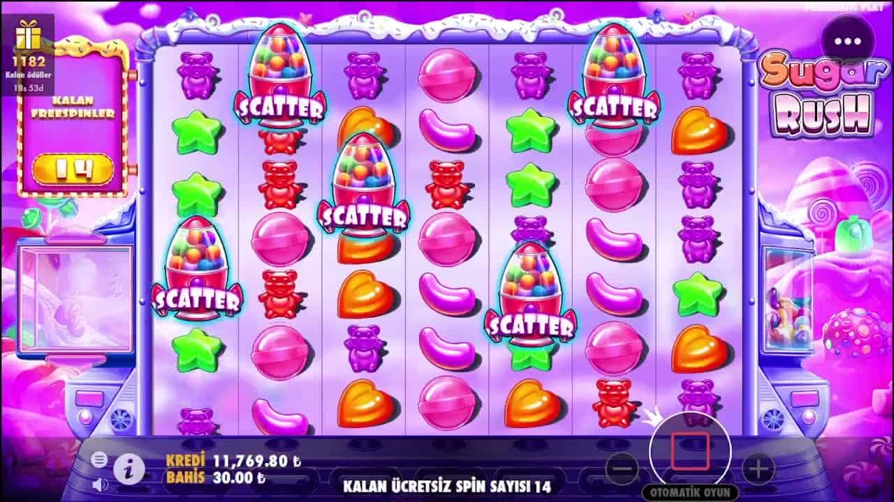 Fitur free spins menjadi highlight Sugar Rush. Untuk memicunya, pemain harus mendapatkan sejumlah simbol scatter tertentu. Saat free spins aktif, simbol pengali muncul lebih sering dan kemenangan bertumpuk semakin mudah didapat.